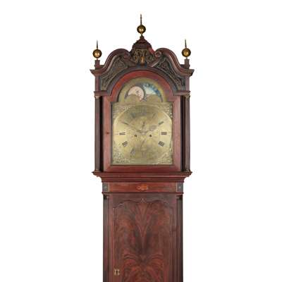 ENGLISH MAHOGANY MOONPHASE LONGCASE CLOCK, BY JOHN HAWORTH, HEATON