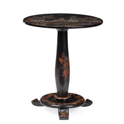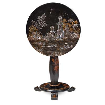 EARLY VICTORIAN MOTHER-OF-PEARL INLAID PAPIER MACHE OCCASIONAL TABLE, IN THE MANNER OF JENNENS AND BETTRIDGE