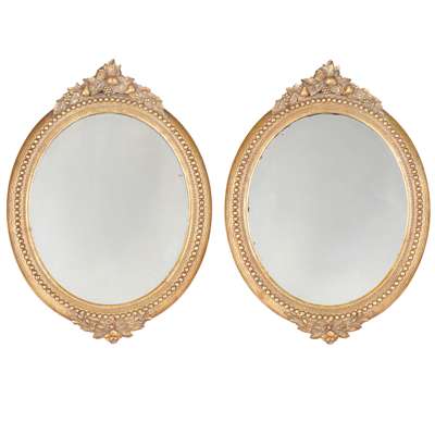 PAIR OF LATE VICTORIAN OVAL GILTWOOD AND GESSO WALL MIRRORS