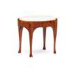 the oval drop-in seat covered in white leather, raised on tapered legs