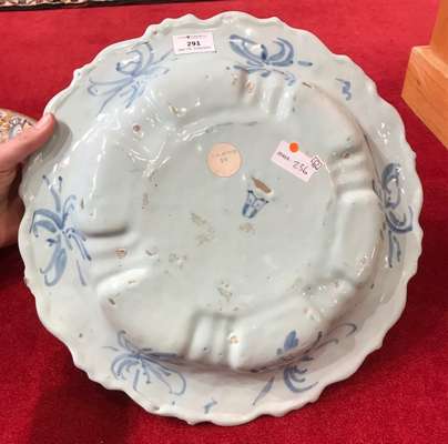 ITALIAN MAIOLICA LARGE BLUE AND WHITE DISH