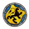 roundel 33.5cm diam; pointed arch panel 64cm long, 37.5cm wide, armorial panel 49cm long, 24.5cm wide