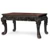 the red variegated marble top set within a carved leaf and beaded border, the frieze carved in relief with a scrolling vinous design with figures of flying squirrels, the cabriole legs with ruyi-head shaped feet, the back of the top and rear legs with a flat backs