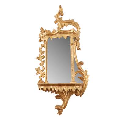 in the Chippendale style, the asymmetrical shaped mirror plates enclosed by pagoda bracket frames carved with acanthus scrolls (2)