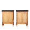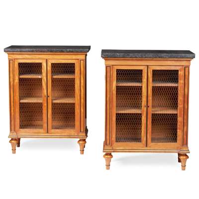 PAIR OF REGENCY SATINWOOD AND EBONY MARBLE TOPPED SIDE CABINETS
