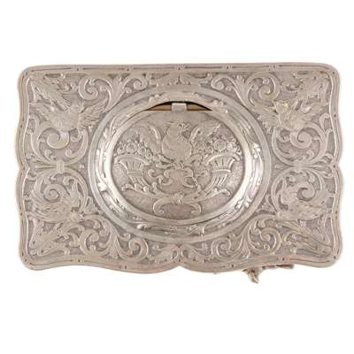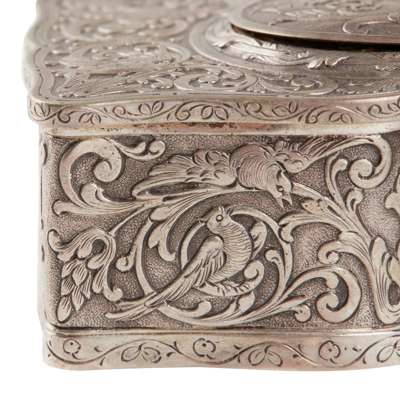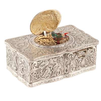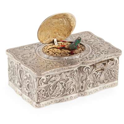 GERMAN OR AUSTRIAN SILVER AND GILT-SILVER SINGING BIRD BOX