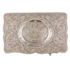 of serpentine rectangular form, engraved with birds between cornucopia and scrolling vines, with an oval spring release lid and rising automaton bird with moving beak, wings and tail; signed ‘Asprey’ to the back, inside a fitted leather box marked by the same