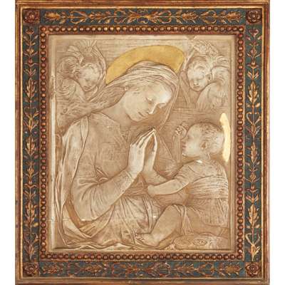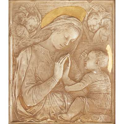 ITALIAN PARCEL-GILT PLASTER RELIEF PLAQUE, AFTER DESIDERIO DA SETTIGNANO