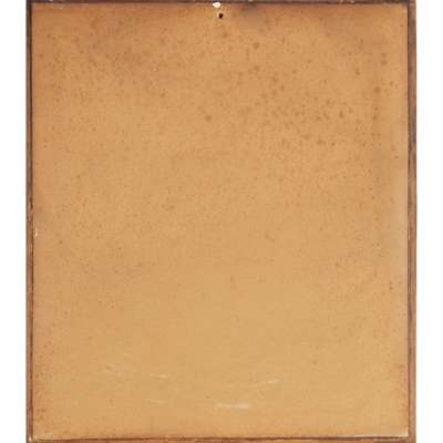 the central figures flanked by cherubims, the panel painted to simulate marble, in a rectangular floral carved wood frame