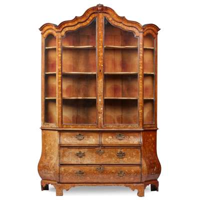 DUTCH WALNUT AND MARQUETRY DISPLAY CABINET-ON-CHEST