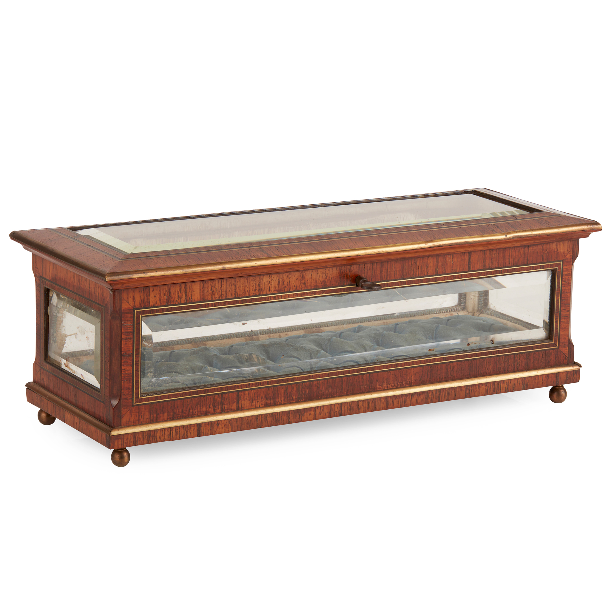 FRENCH ROSEWOOD AND BRASS GLAZED BIJOUTERIE CASKET Y