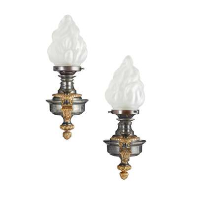 PAIR OF PATINATED BRONZE WALL LIGHTS