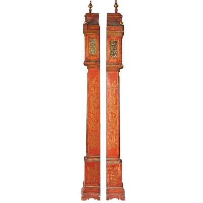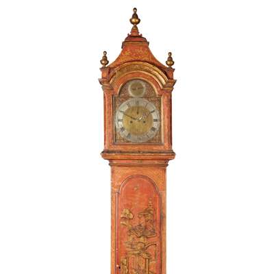GEORGE II RED JAPANNED LONGCASE CLOCK
