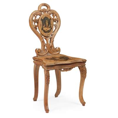 SWISS WALNUT AND MARQUETRY MUSICAL SIDE CHAIR