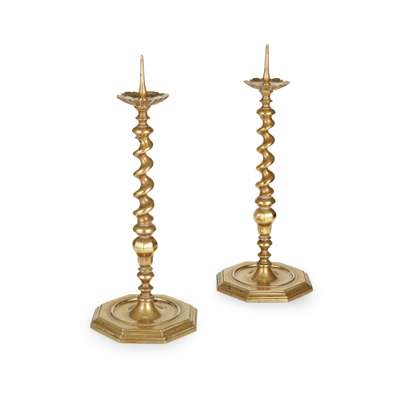 PAIR OF BRASS TWIST PRICKET CANDLESTICKS