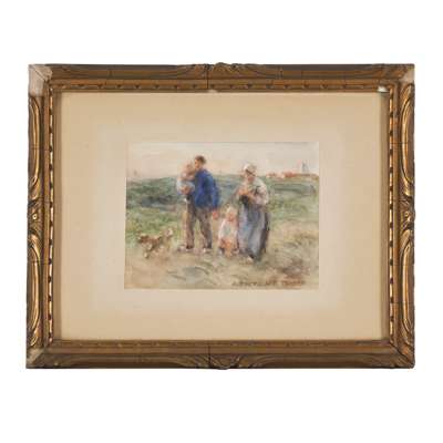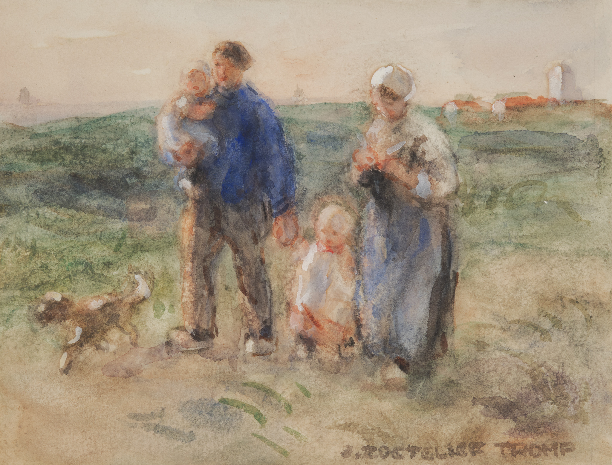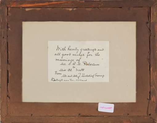 Signed and inscribed on a label verso ‘With hearty feelings and all good wishes for the marriage of Mr D.R.M.Robertson to Miss Ch.Scott from Mr & Mrs J.Zoetelief Tromp’, watercolour