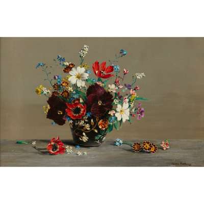 Signed and dated ‘46, inscribed on a label verso with the individual flowers depicted and marked A46 in the artist's catalogue, oil on board