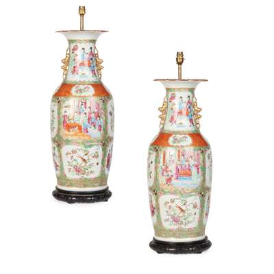 PAIR OF CHINESE EXPORT FAMILLE ROSE BALUSTER VASES
