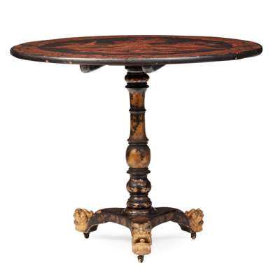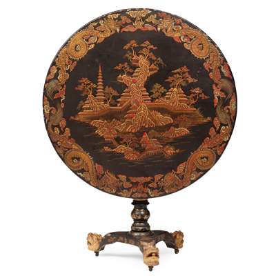 CHINESE EXPORT BLACK LACQUER PARCEL-GILT TEA TABLE