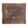 the dark indigo field with allover palmette and scrolling vine pattern, within red border
