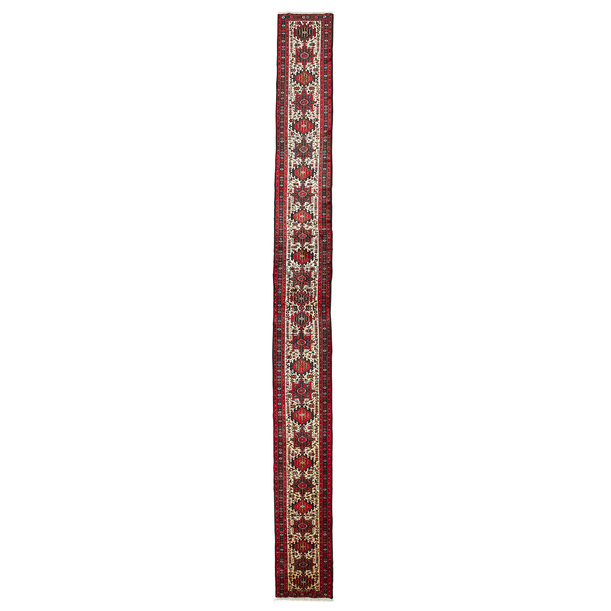 the ivory field with column of multiple polychrome medallions, within narrow indigo border