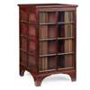 the square top with a banded edge above pairs of astragal glazed doors to all sides all enclosing shallow shelves, two sides with applied false book spines to the shelves, on bracket feet