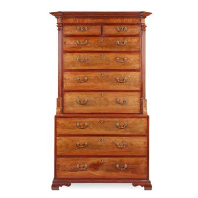 GEORGE III MAHOGANY TALL CHEST-ON-CHEST, PROBABLY CHANNEL ISLANDS