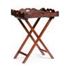 the tray with deep shaped galleries with cut-out handles to all sides, on a folding stand