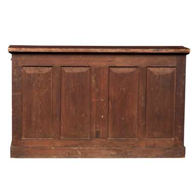 the rectangular top above three doors with brass grille inserts lined with pleated peach coloured silk, enclosing a shelved interior, on a plinth base