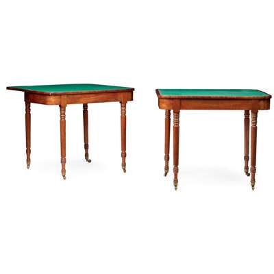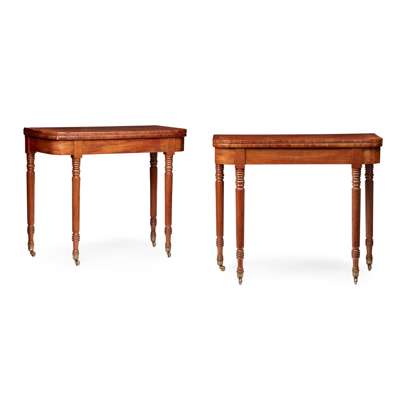 PAIR OF REGENCY MAHOGANY AND ROSEWOOD CROSSBANDED CARD TABLES Y