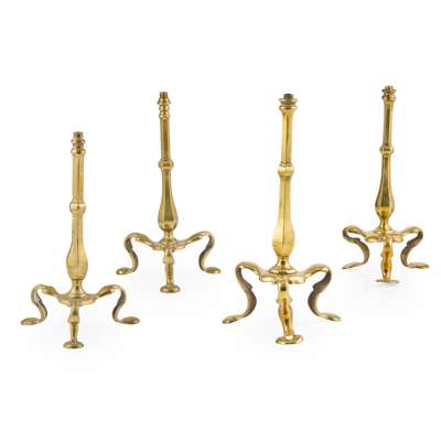 TWO MATCHED PAIRS OF EDWARDIAN BRASS PULLMAN LAMPS