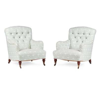 PAIR OF 'BRIDGEWATER' UPHOLSTERED EASY ARMCHAIRS, BY HOWARD & SONS
