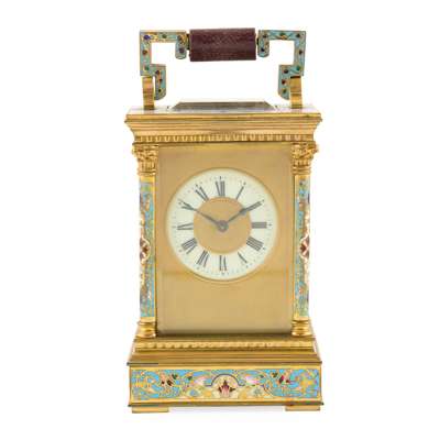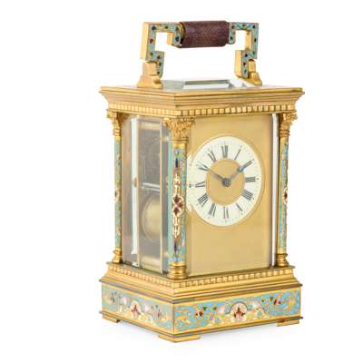 FRENCH GILT BRASS AND CHAMPLEVE ENAMEL CARRIAGE CLOCK