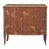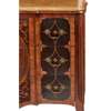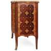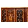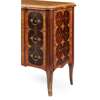 GEORGE III HAREWOOD, ROSEWOOD, AND BOXWOOD BREAKFRONT MARQUETRY MARBLE TOPPED COMMODE Y