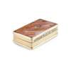the hinged lid and base formed of two panels of slight concave agate with a facetted edge, set in reeded borders with engine turned body and a floral embossed clasp