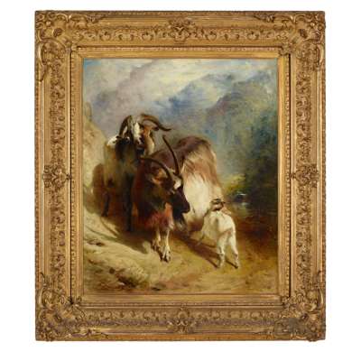 GOATS IN A MOUNTAIN LANDSCAPE