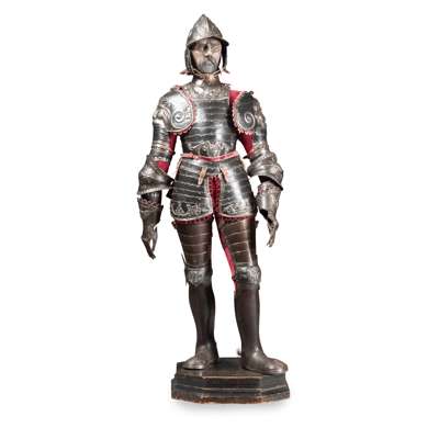 Note: The present lot, a most extraordinarily fanciful suit of armour, was made in the 19th century, and is based on the work of the 16th century Italian armourer Filippo Negroli, whose embossed armour was praised by sixteenth-century writers as ‘miraculous’ and deserving ‘immortal merit.’