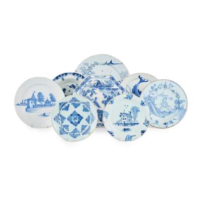 Note: For examples of the Bristol whale plate and the Liverpool plate with the lady under a parasol see English Delftware, Garner and Archer, Faber & Faber Ltd, 1972, plate 67C and plate 84A.