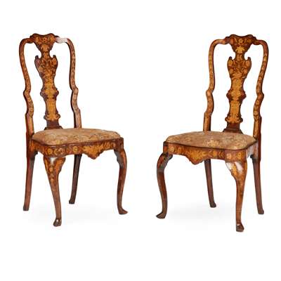 PAIR OF DUTCH WALNUT AND MARQUETRY SIDE CHAIRS