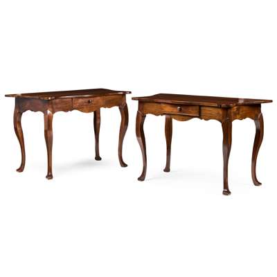 PAIR OF FRENCH PROVINCIAL WALNUT CONSOLE TABLES