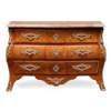 LOUIS XV TULIPWOOD AND BOIS SATINE MARBLE TOPPED BOMBE COMMODE