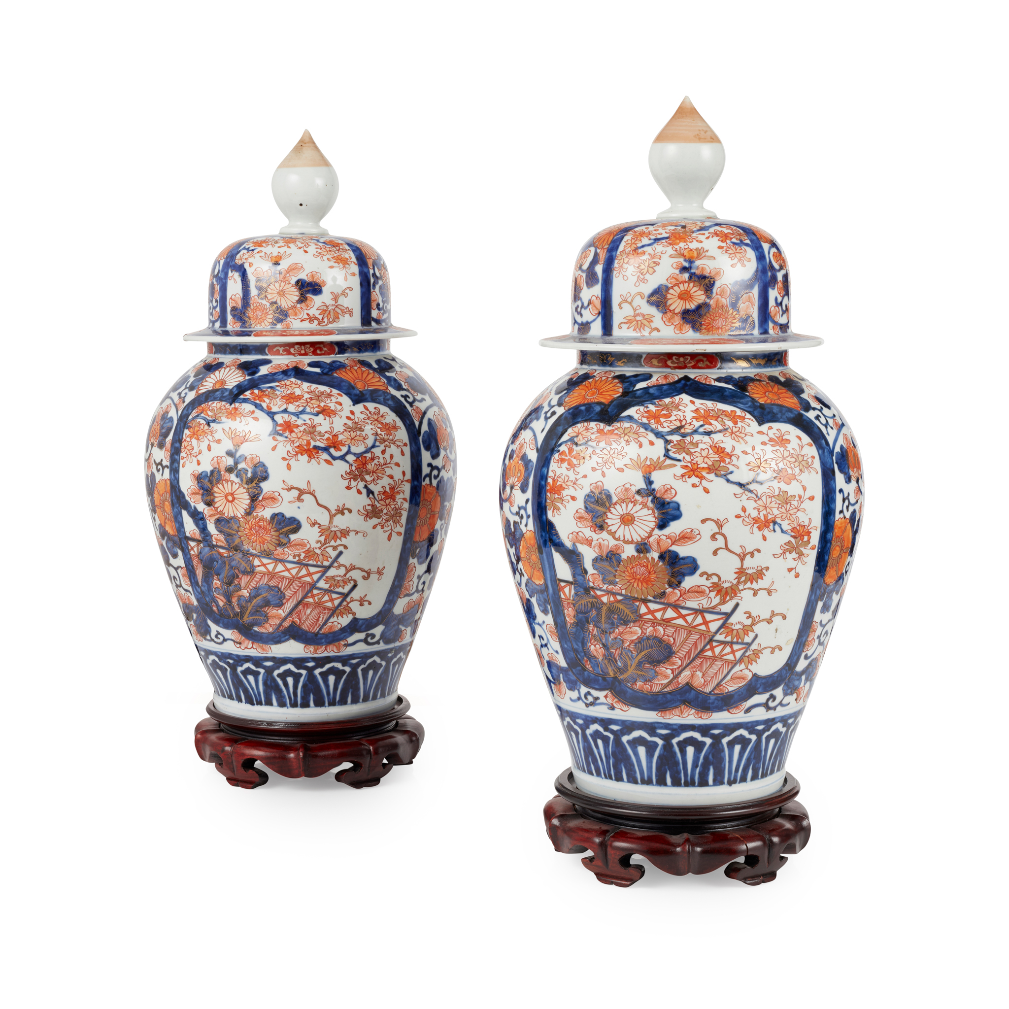 PAIR OF JAPANESE IMARI JARS AND COVERS