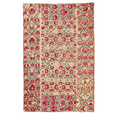 the cream field with central palmette and foliate lattice panel, within similar larger format border