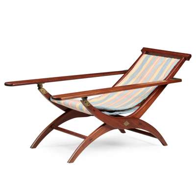 with an awning stripe cloth slung seat, on arched legs