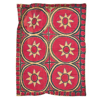 the field with six large red circular medallions, within palmette border