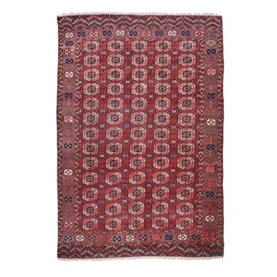 the brick red field with five columns of thirteen guls, within red border, elem panels