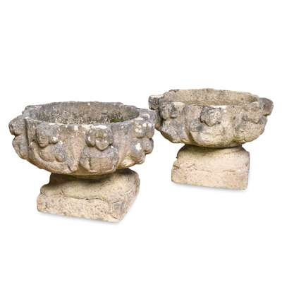 PAIR OF MEDIEVAL STYLE COMPOSITION STONE JARDINIERES