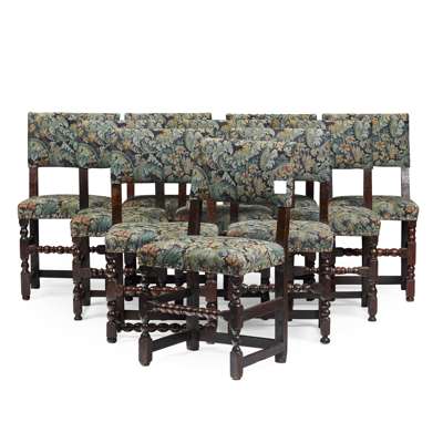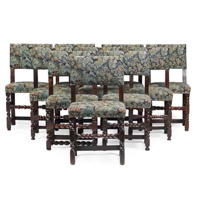 MATCHED SET OF TEN CHARLES II OAK BACKSTOOLS