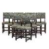 the cushioned square backs over stuff-over seats, raised on turned legs united by bobbin turned front bars and peripheral stretchers, upholstered in verdure tapestry style fabric outlined with brass close nail trim (10)