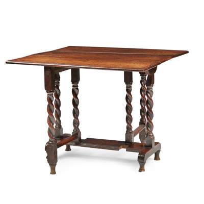 the rectangular top with drop sides, raised on spiral twist legs and turned feet